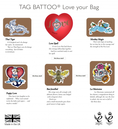 - They are inspired by tattoos and individually handcrafted in the UK using inking, gilding and embossing techniques.