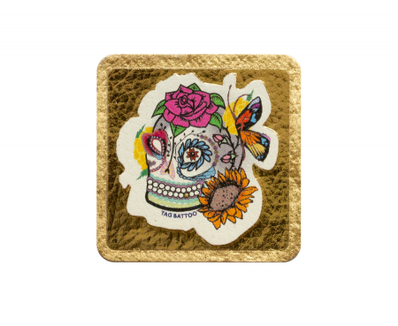 - La Mexicana by Tag Battoo is inspired by the striking iconography of Mexico’s Day of the Dead. La Mexicana is the belle of the ball, embossed on gold, swathed in pastel flowers, crowned with a butterfly and complete with gold tooth.