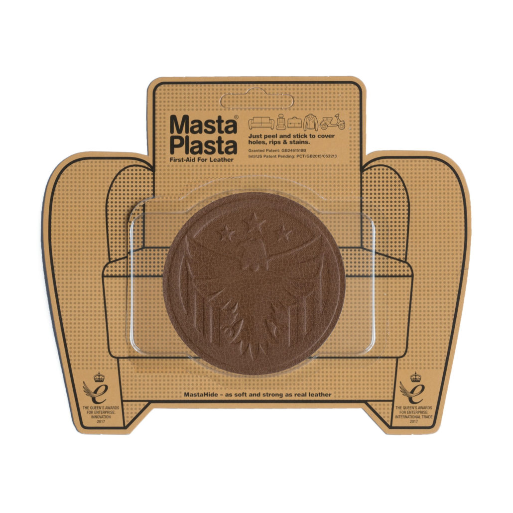 - These Eagle embossed MastaPlastas measure 8cm x 8cm (3×3″) and can be used to mend or decorate leather, suede, vinyl and many other upholstery fabrics.