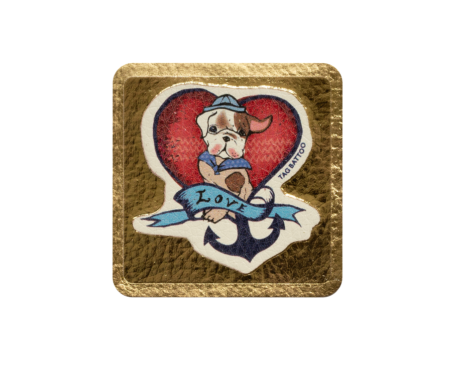- Inspired by traditional sailor body art, Ziggy the puppy has just the right number of patches and the softest pink muzzle. Simply peel off the backing and press down to attach to your bag or jacket. It has to be the easiest quickest and best-looking way to repair a hole, burn, stain or tear. Or just use for decoration – Tag Battoos make great, unique gifts.