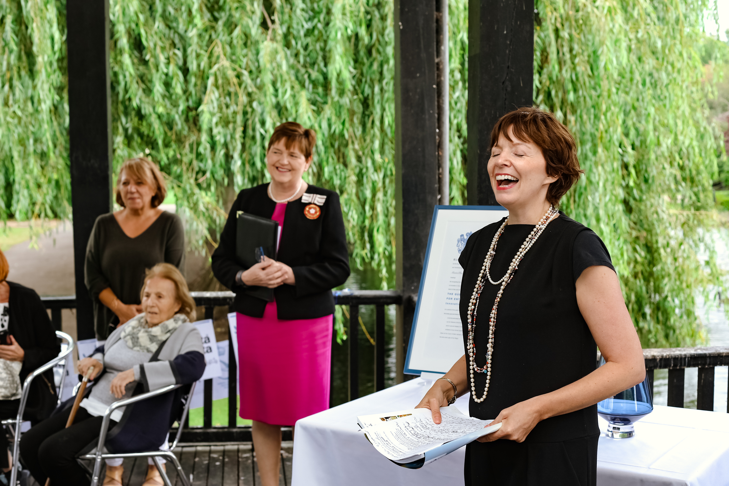 The London Council of Enfield gave us permission to use the beautiful lakeside bandstand in an amazing Victorian park near our offices. The Queen’s Representative Deputy Lieutenant Ann Cable MBE, the Mayor of Enfield Christine Hamilton and the council’s Chief Executive Ian Davis all turned out for us – and in such good spirits! Speeches were made all round. We praised the positive energy of London flowing through our trophies and everyone who had helped us turn an idea into a thriving reality. It makes me smile just writing this – what a day it was!